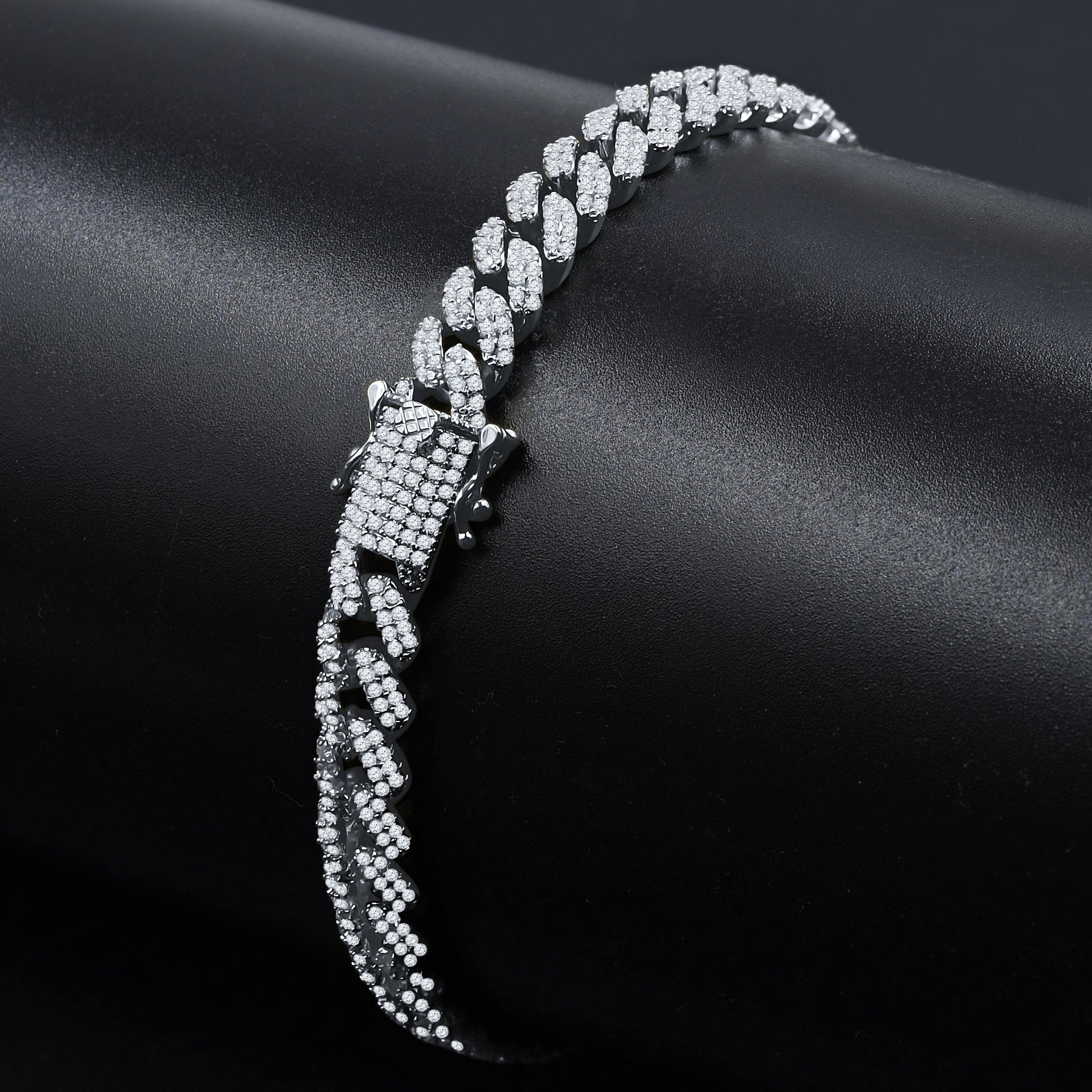ANGUS signifies full on might, persona, striking appeal with a true fashion sense for every cubano enthusiast. Completely immersed in pure 925 Silver semi-precious metal, the cuban bracelet is studded with flawless highest grade cubic zirconia by selective artisans in our jewelry factory. Wear it with pride.